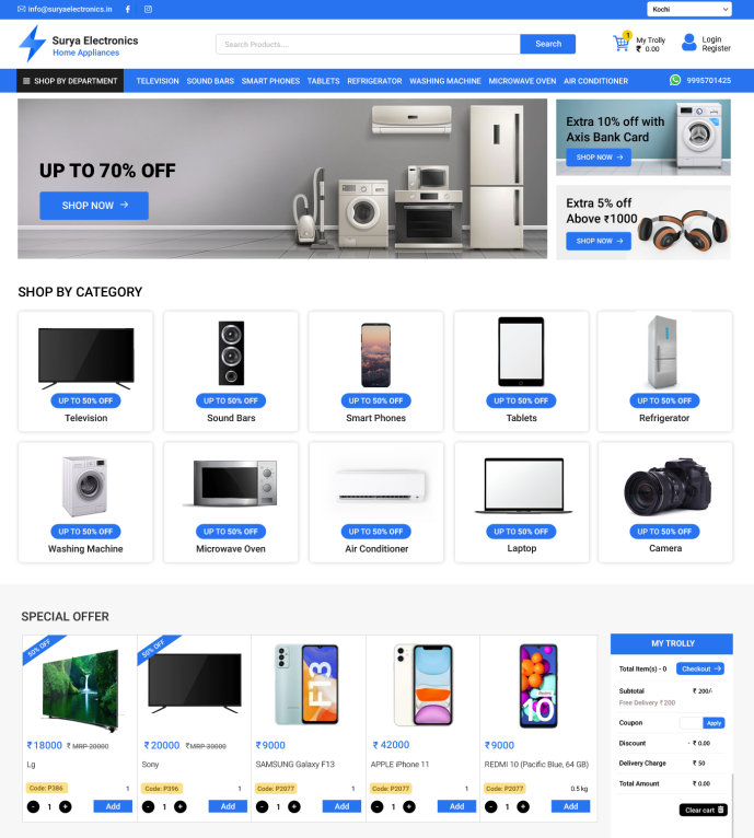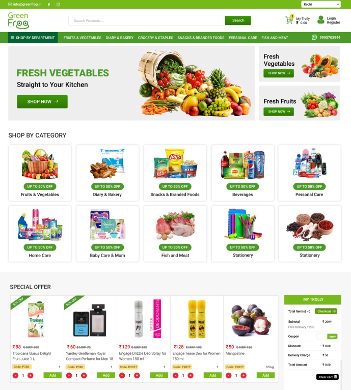 Contact Us : +91 9446717047 Grocery delivery mobile app provides a Complete Solution for Sell Grocery Products like Vegetables, Fruits, Dairy Products through Website, Android & iOS App. Its a Fully Optimized to Give Faster & Easier Shopping Experience To Your Customers. Social Login, Easy Checkout, Simple Menu Give a convenient way to Buy Products for your Customer. It is suitable for supermarket, restaurant, bakery, fish and meat store, furniture shop, electronic shop, fashion and footwear shop …etc. Online food and grocery delivery app with online payment gateway.